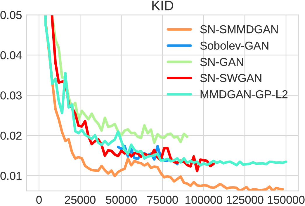 | MMD GAN-GP | ![]() .032 ± .001 | ![]() .027 ± .001 |